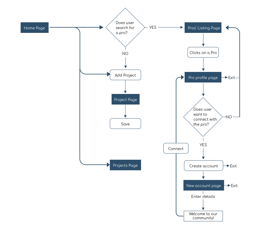 Using the User Flow diagram helped me to discover the steps that user has to follow to meet his goal, in our case to solve his problem in the shortest and easiest way.
